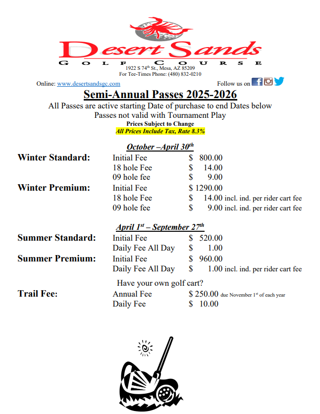 While things have changed at Desert Sands we believe that the Seasonal Golf Pass still provides the best opportunity to enjoy the golf course and other facilities to the fullest. Through our Seasonal Golf Pass and Golf League options you will find the opportunity to discover one of Phoenix’s best golf experiences.